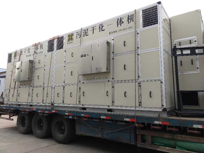 污泥干化一体机主要利用密闭式热风循环冷凝工艺,对污泥进行低温干化,有效的提高了干化效率,降低能耗。设备采用热泵加热技术、热回收利用技术、梯度式加热制冷技术,具有节能环保等优点,实现了对污泥的稳定化、无害化及减量化处理。